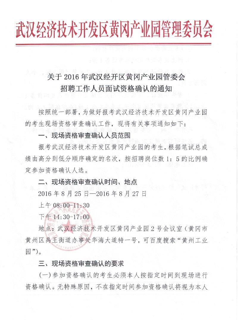 2016湖北武漢經(jīng)開(kāi)區(qū)黃岡產(chǎn)業(yè)園管委會(huì)招聘面試資格確認(rèn)通知