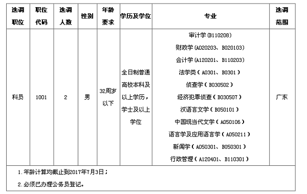 備注:正在試用期的,接受處間或接受審計、紀(jì)律審查、司法偵察的,違反計劃生育和有關(guān)規(guī)定的,以及具有其他不宜參加公開選調(diào)情形的均不列入公開選調(diào)對象。