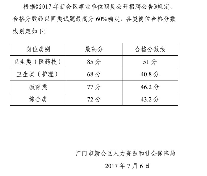 2017江門新會(huì)區(qū)事業(yè)單位職員公開招聘筆試合格分?jǐn)?shù)線