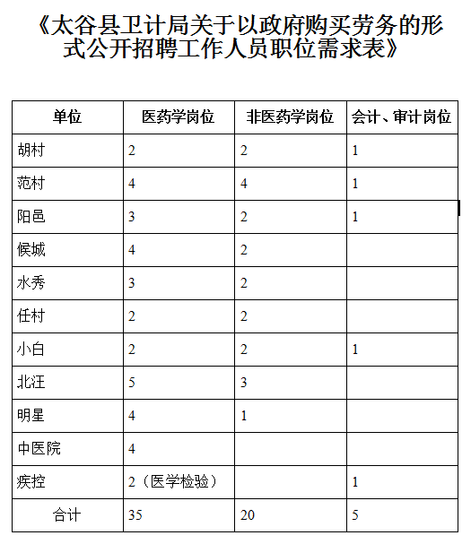 原標(biāo)題:晉中太谷縣衛(wèi)計局公開招聘60名人員方案