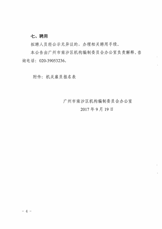 2017廣東南沙區(qū)機構(gòu)編制委員會辦公室招聘機關(guān)雇員公告【招1人】