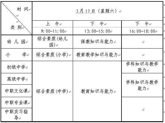 1.全國中小學(xué)教師資格考試日期為2018年3月17日,具體時間安排如下: