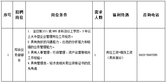 因公司業(yè)務(wù)發(fā)展需求,經(jīng)研究,現(xiàn)招聘公司中層崗位1名。