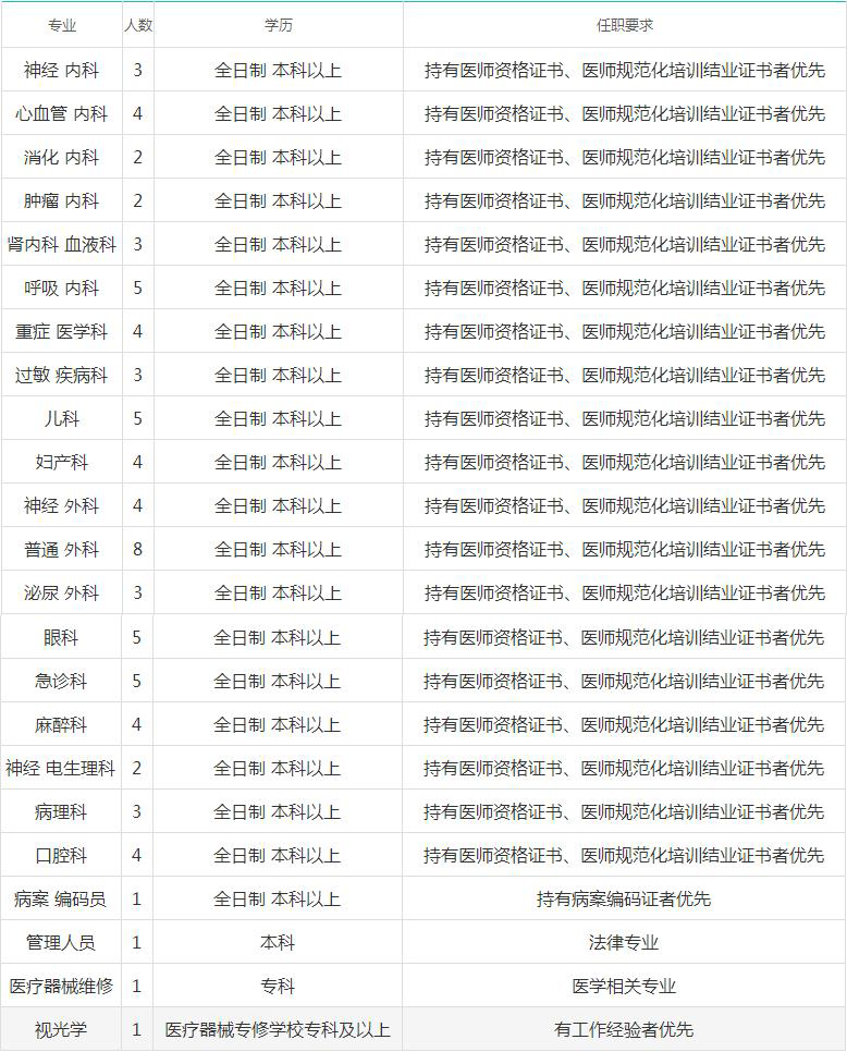 為滿足醫(yī)院臨床工作需求,醫(yī)院本著“公開、公平、擇優(yōu)”的原則,擬公開招聘以下崗位人員: