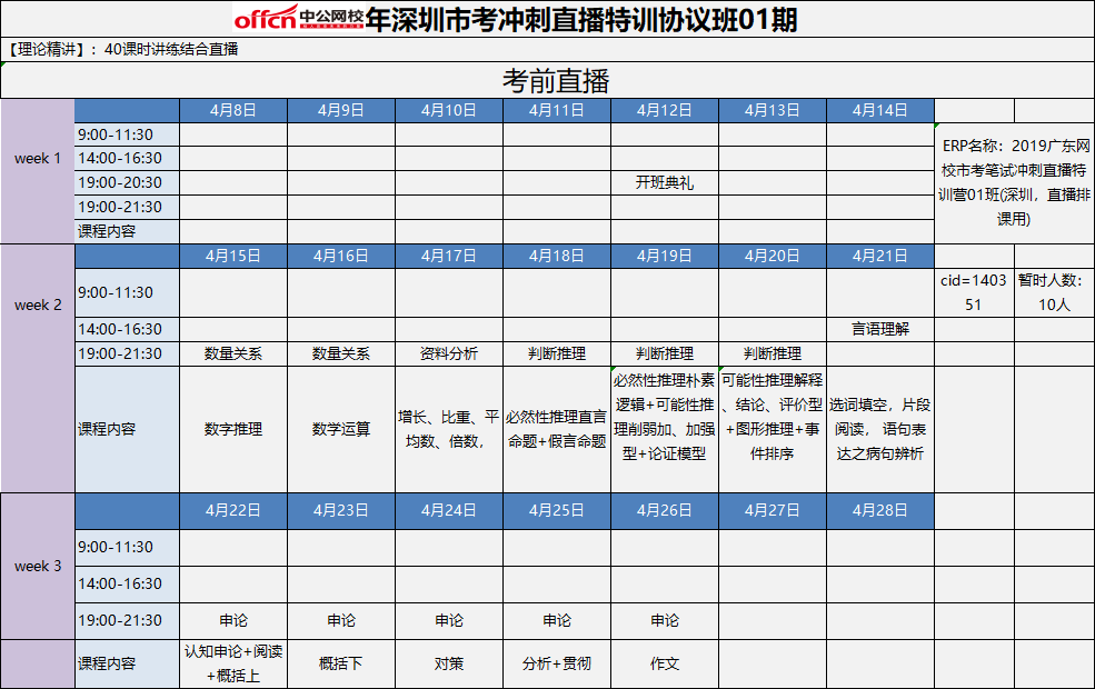 2019年省考小班私教直播特訓(xùn)營課程安排表