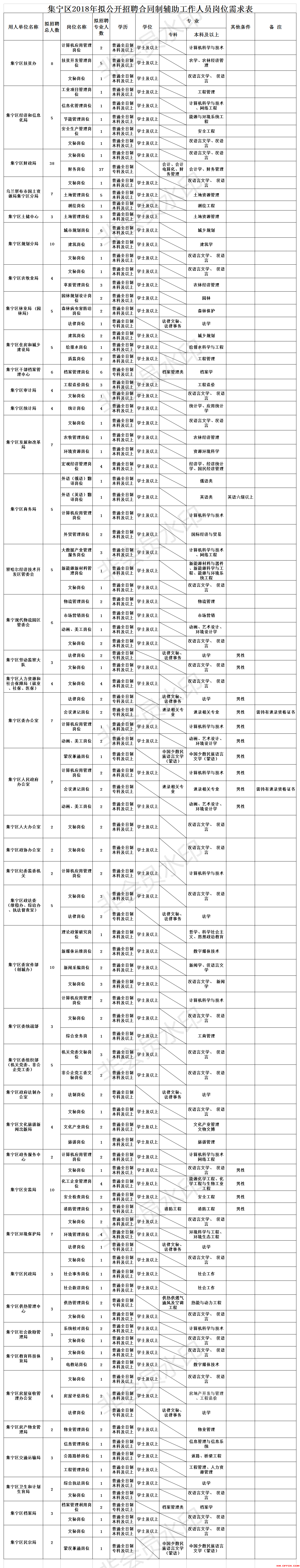 為了有效緩解集寧區(qū)各類人員短缺的現(xiàn)狀,更好地推進我區(qū)各項事業(yè)快速發(fā)展,經(jīng)區(qū)委、區(qū)政府研究決定,擬面向社會公開招考聘用合同制輔助工作人員。本次擬計劃公開招聘合同制輔助工作人員225名,涉及55個崗位,近70個專業(yè),詳情請見《集寧區(qū)2018年擬公開招聘合同制輔助工作人員崗位需求表》。報考時間擬定為2018年9月6日,考試時間擬定為9月15日。具體招聘事宜以烏蘭察布市人事考試信息網(wǎng)(http://www.wmpta.org.cn)公告為準,請報考人員隨時關(guān)注。