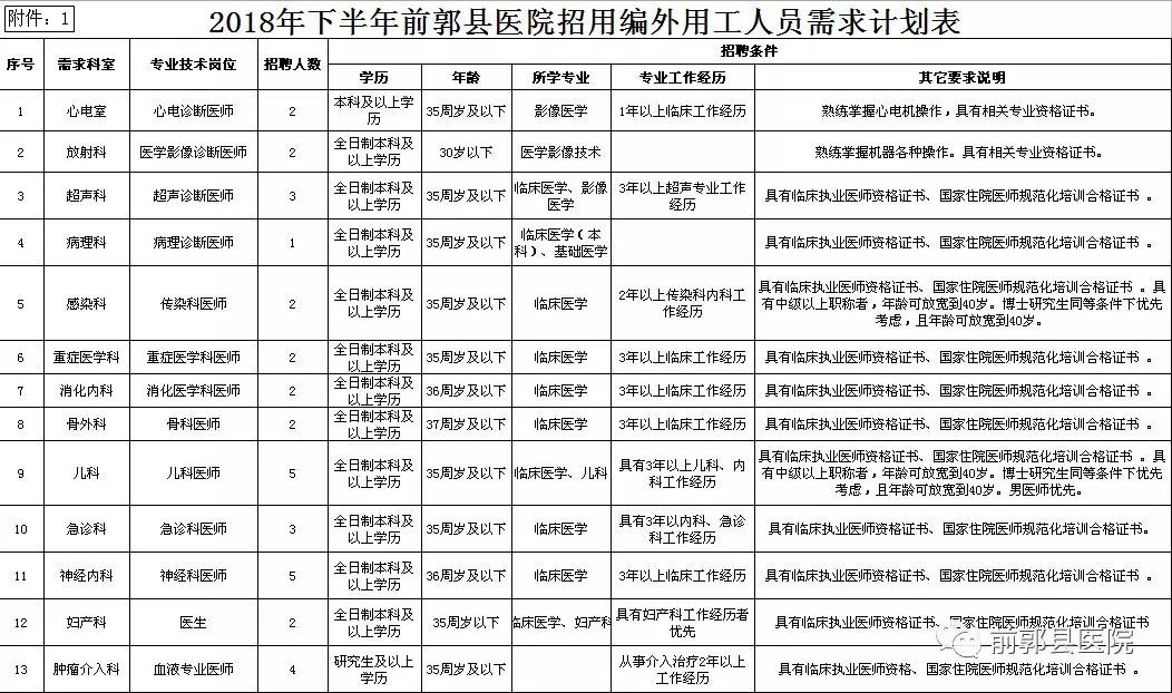 附件:1. 《2018年前郭縣醫(yī)院招用編外用工人員需求計(jì)劃表》