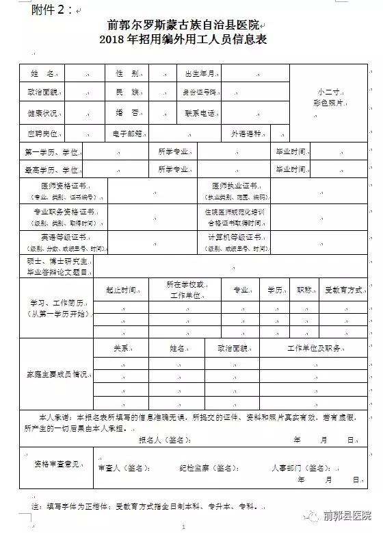 2. 《前郭縣醫(yī)院招用編外用工人員報(bào)名信息表》