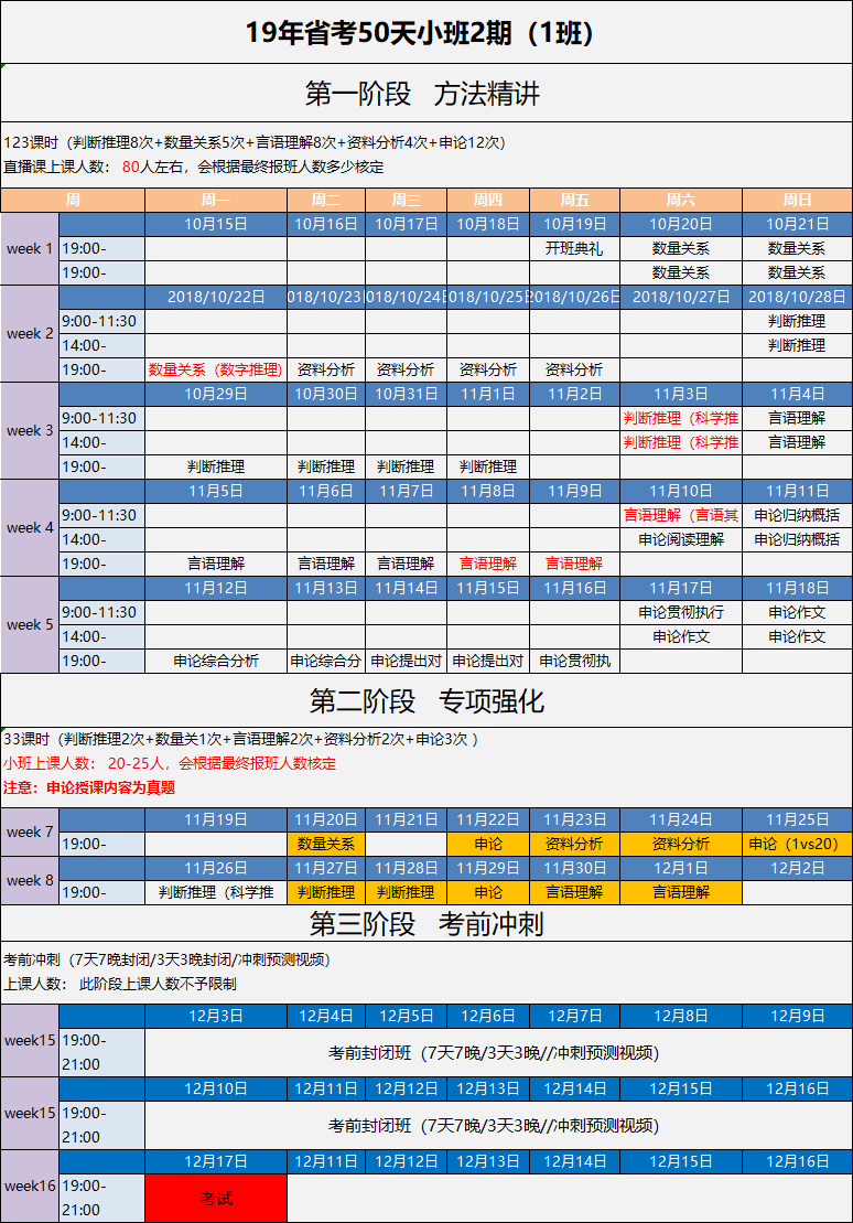 2019年省考小班私教直播特訓(xùn)營課程安排表
