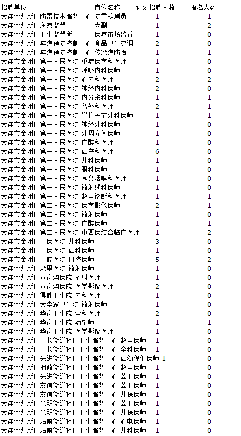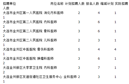根據《2015年大連金州新區(qū)部分事業(yè)單位公開招聘工作人員公告》規(guī)定和報名情況,由于此次公開招聘中有55個招聘崗位的有效報考人數(shù)未達到3:1比例的規(guī)定,現(xiàn)將取消和縮減崗位情況公告如下: