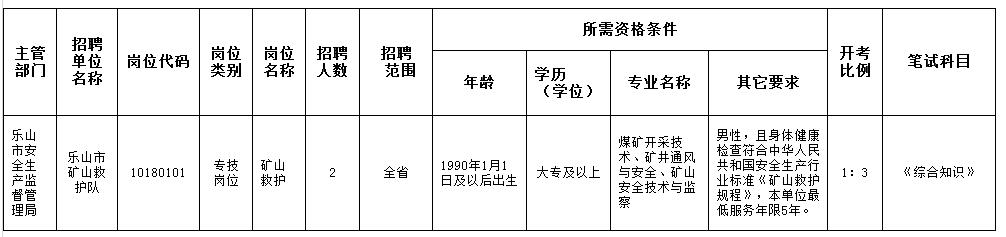 樂山市礦山救護(hù)隊(duì)(崗位代碼:10180101)原公告崗位類別一欄“工勤崗位”更改為“專技崗位”,