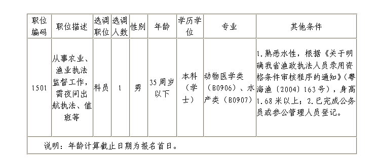 選調(diào)人員應(yīng)符合《中華人民共和國公務(wù)員法》規(guī)定的基本條件,具有國家公務(wù)員或參公管理人下員身份,公務(wù)員年度考核均為稱職以上等次,選調(diào)職位及相關(guān)條件如: