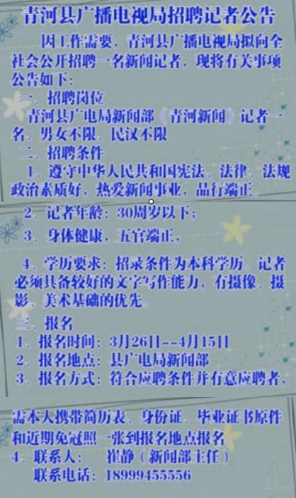 原標(biāo)題:青河縣廣電局招聘記者公告