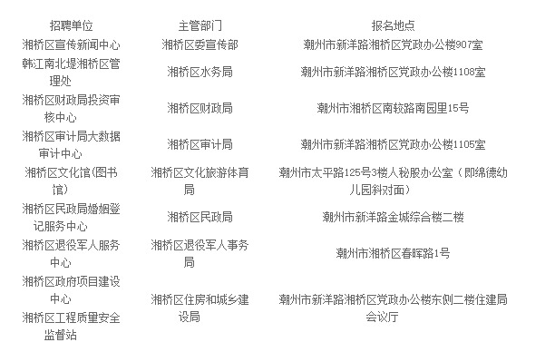 湘橋區(qū)公開(kāi)招聘事業(yè)單位人員工作領(lǐng)導(dǎo)小組