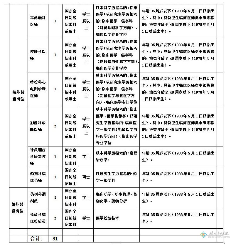2019年德州市立醫(yī)院院部第二批自主招聘臨床醫(yī)技崗位招考簡章(31人)