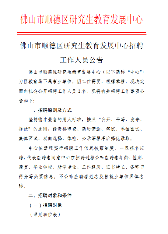 2015年廣東省佛山市順德區(qū)研究生教育發(fā)展中心招聘2人公告