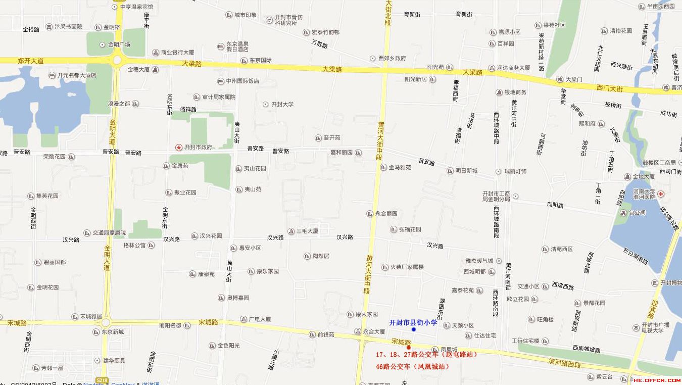 注意:因道路施工,請(qǐng)沿金明西街(金明廣場(chǎng)向西300米)向北500米走到頭后,向西200米即可到達(dá)開封市集英中學(xué)