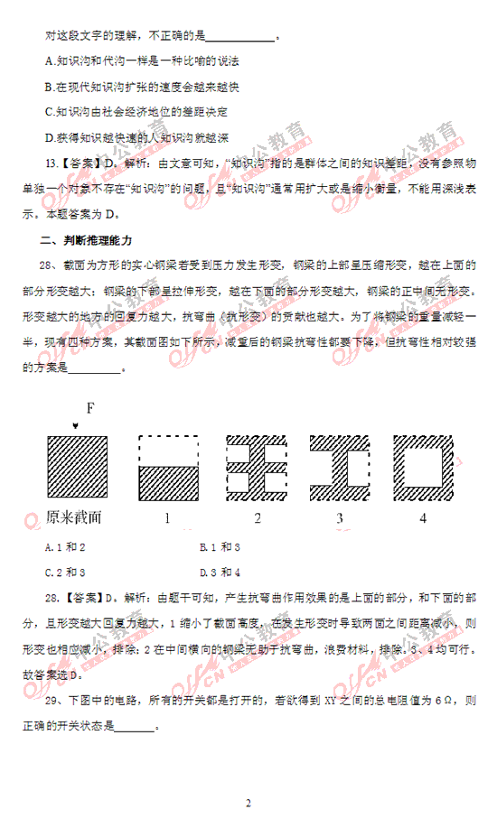 2012年上海市公務員考試行測(B卷)部分及答案解析