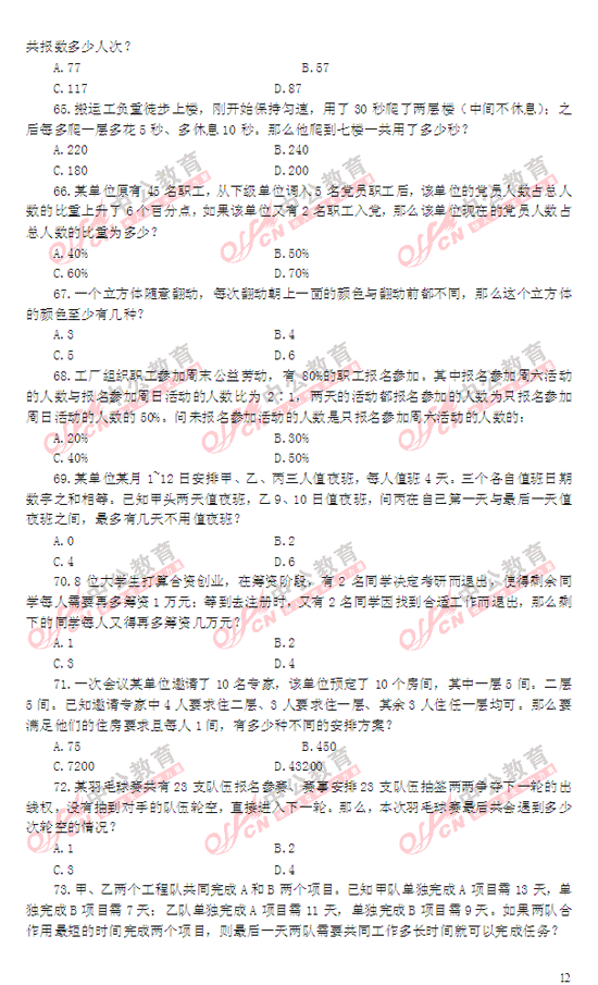 2014年國(guó)家公務(wù)員考試行測(cè)匯總