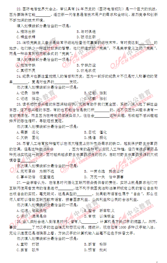 2014年國家公務員考試行測匯總