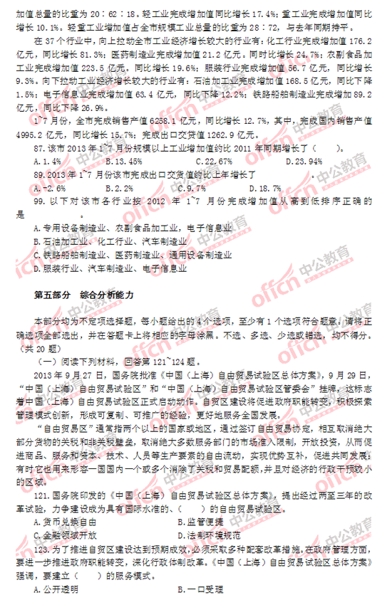 2014上海市公務(wù)員考試行測(cè)(A類(lèi))