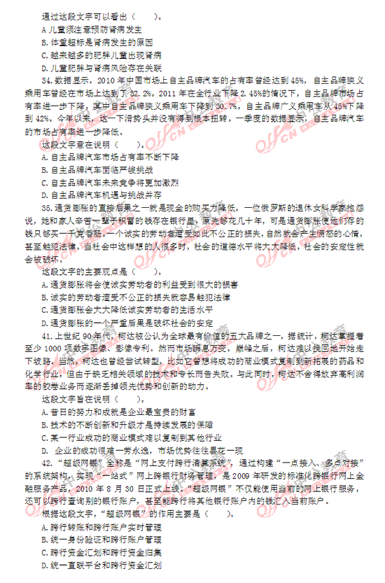 2012年廣東縣以上公務(wù)員考試行測(cè)