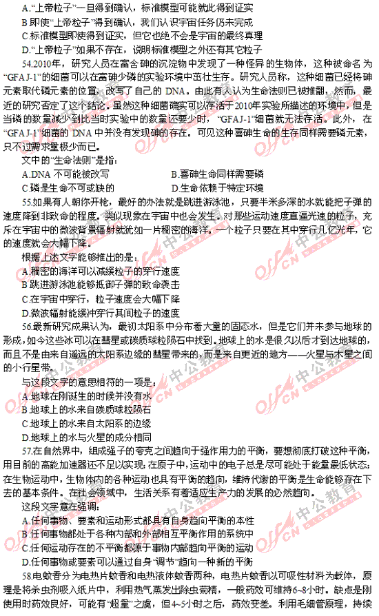 2012年福建秋季省考行測