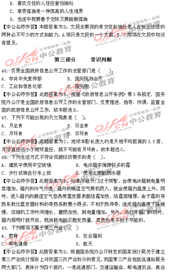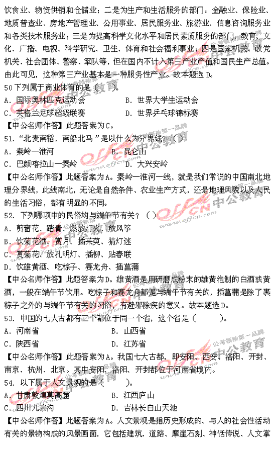 福建省2010年秋季公務(wù)員考試行測及解析