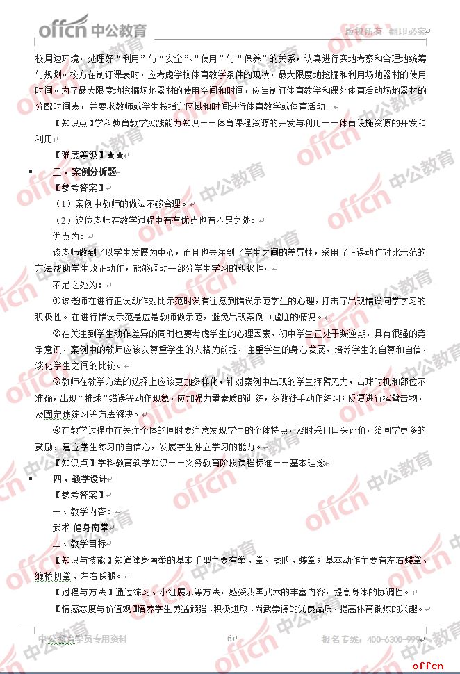 2017年江西教師招聘《中學(xué)體育》試題答案及解析
