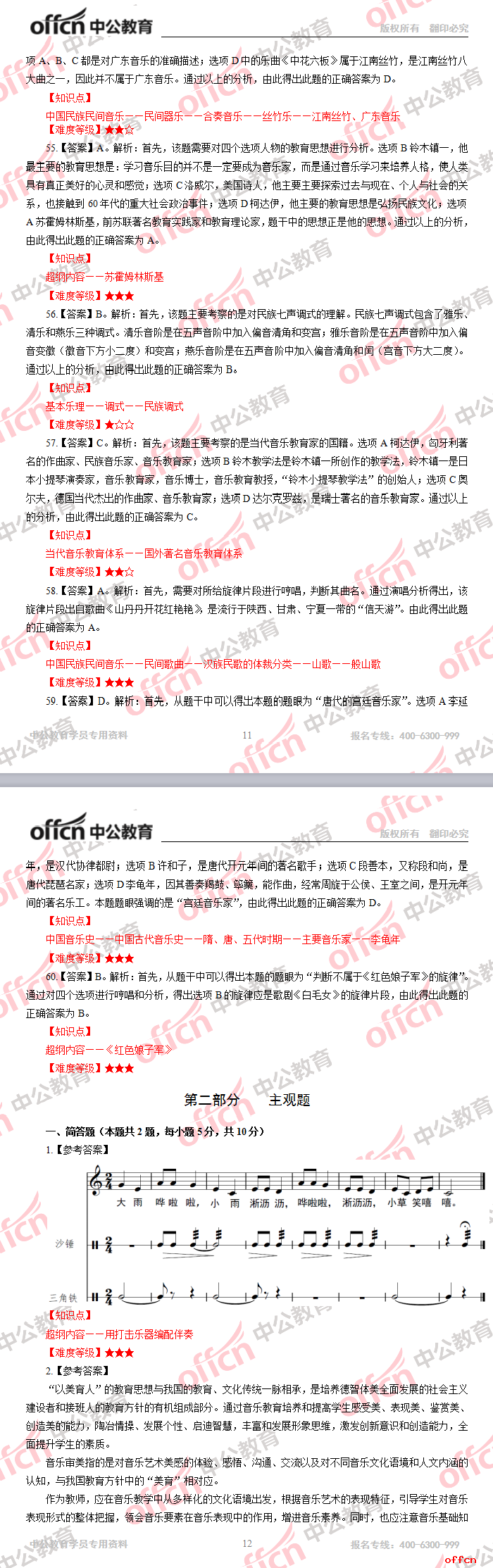 2017年江西教師招聘《小學(xué)音樂》試題答案及解析