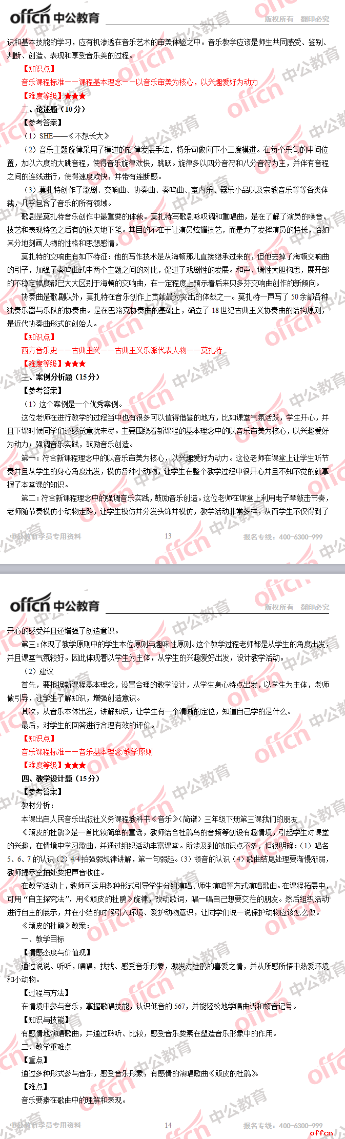 2017年江西教師招聘《小學音樂》試題答案及解析