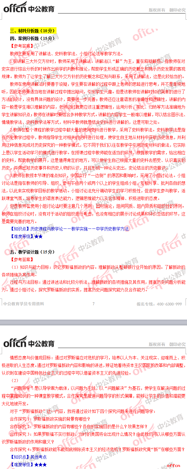 2017年江西教師招聘《高中歷史》試題答案及解析