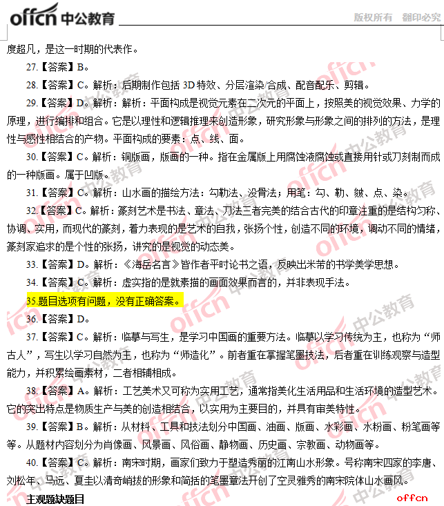 2017年江西教師招聘《高中美術(shù)》試題答案及解析