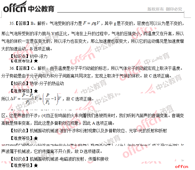 2017年江西教師招聘《高中物理》試題答案及解析