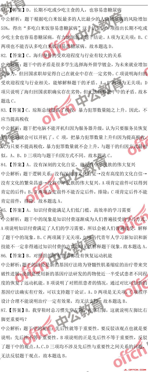 2018吉林公務(wù)員考試行測(甲)歷年參考答案及解析