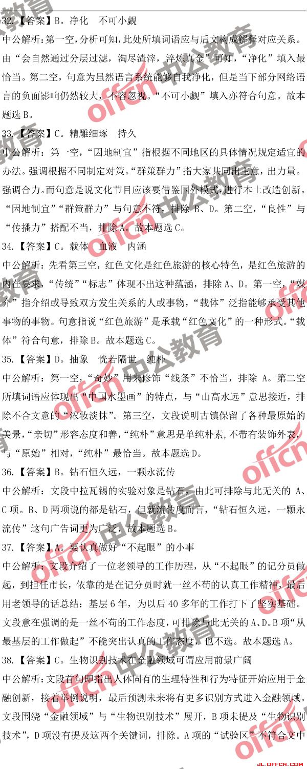 2018吉林公務(wù)員考試行測(甲)歷年參考答案及解析