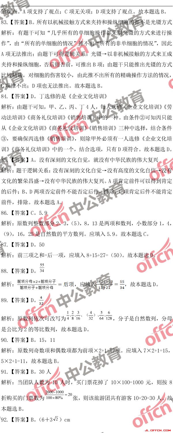 2018吉林公務(wù)員考試行測(cè)(乙)歷年參考答案及解析