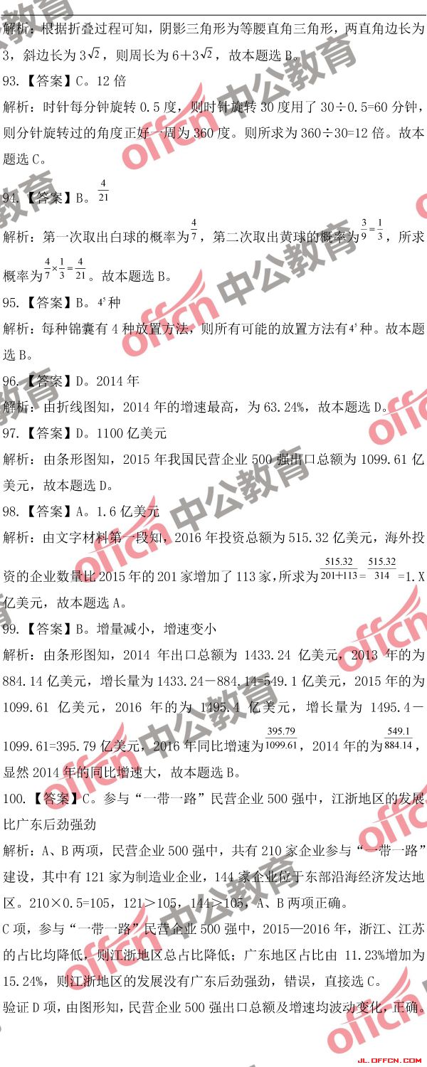 2018吉林公務(wù)員考試行測(cè)(乙)歷年參考答案及解析