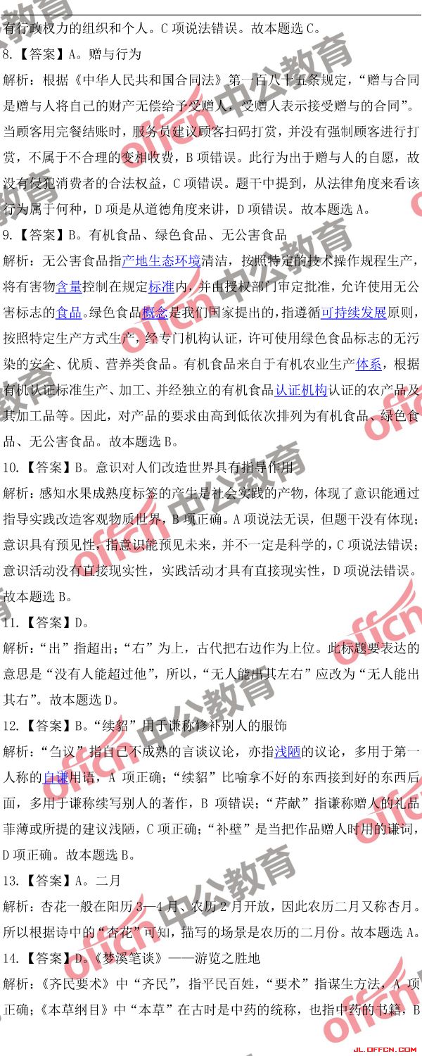 2018吉林公務(wù)員考試行測(乙)歷年參考答案及解析