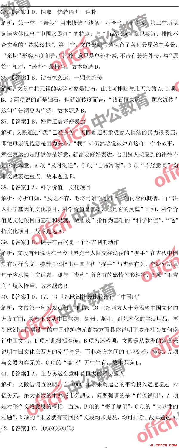 2018吉林公務(wù)員考試行測(乙)歷年參考答案及解析