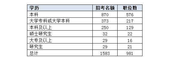 本次考試對考生的學(xué)歷要求進(jìn)行了具體設(shè)置,劃分更為細(xì)致,從大專到博士全部覆蓋,從以上數(shù)據(jù)可以看出,本科學(xué)歷的考生最受青睞,可以報考96%的職位。中公網(wǎng)校專家建議考生可以報考學(xué)歷范圍較小的職位,比如說一名研究生可以報考僅招研究生的職位,如果去報考本科及以上學(xué)歷的職位明顯會增加很多競爭對手,客觀上會降低概率。