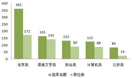 在本次招錄考試的專業(yè)要求中,對法學(xué)類、語言文學(xué)類、財會類、公安類、計算機(jī)類等方面的人才需求比較旺。尤其是法學(xué)類,本次考試的需求為362個名額、172個職位,以性優(yōu)勢占據(jù)頭把交椅。職位表中有些專業(yè)的表述為某類別,并沒有具體到某個具體專業(yè),如果考生對自己的專業(yè)所屬類別不清楚的話可以參看《2016海南省考試錄用公務(wù)員專業(yè)目錄》,以免因?yàn)閷I(yè)不符未通過審核。
