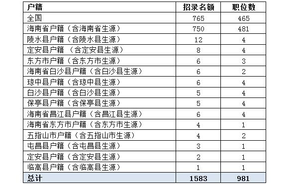 本次考試半數(shù)以上的職位對考生的戶籍進行了設(shè)定,818個名額、516個職位需為海南省內(nèi)戶籍(含海南省生源),而且部分職位具體到某個縣,占到總計劃名額的52.6%,此外,也有765個名額、465個職位不限制戶籍,全國人民都有機會在海南實現(xiàn)自己的成“公”夢想。
