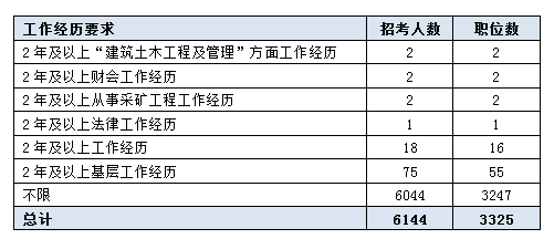 本次考試98.4%的招考人數(shù)不限制工作經(jīng)歷,應(yīng)屆生的選擇面很大,但考生們要注意的是,部分職位對報(bào)考者的工作經(jīng)歷進(jìn)行了“專業(yè)性”要求,不僅對工作經(jīng)歷的年數(shù)進(jìn)行要求,也對工作經(jīng)歷的性質(zhì)進(jìn)行要求,須與報(bào)考職位相匹配,有相關(guān)工作經(jīng)歷的考生可以重點(diǎn)考慮這些職位,縮小競爭范圍,自己的成“公”概率。