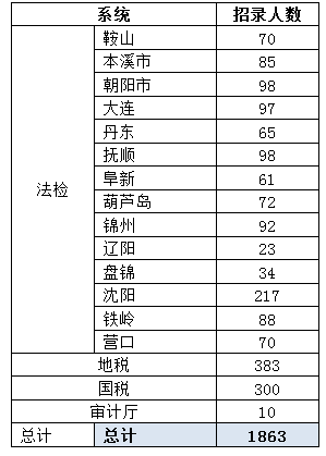 2016年3月25日,遼寧公務(wù)員考試公告發(fā)布,同時,招錄計劃職位表、公共科目筆試大綱以及報考指南等重要考試信息一并發(fā)出,定于4月23日進(jìn)行筆試,于2016年3月27日9時至3月30日24時期間進(jìn)行網(wǎng)上報名。本次招錄計劃職位按照各系統(tǒng)進(jìn)行發(fā)布,其中法檢系統(tǒng)是本次考試的招錄大戶,招錄1170人,其次為地稅系統(tǒng)招錄383人,國稅系統(tǒng)招錄300人,審計廳10人,此外還面向公安院校公安專業(yè)2016年應(yīng)屆畢業(yè)生招錄960人,因為此項招錄計劃僅面向公安院校的應(yīng)屆畢業(yè)生發(fā)布,不向社會發(fā)布,因此,以下分析均不包含該項數(shù)據(jù)。