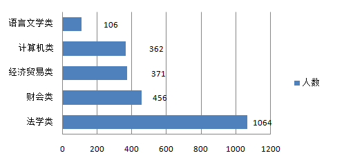 本次招錄法檢系統(tǒng)是招錄大戶,主要招錄有法律教育背景的人才,因此,法學(xué)類專業(yè)成為本次招錄中人氣的專業(yè),共招錄1064人,其次是財會類專業(yè),招錄456人,經(jīng)濟貿(mào)易類與計算機類專業(yè)基本持平,有這些專業(yè)背景的考生在選職位時范圍比較廣,機遇較多。