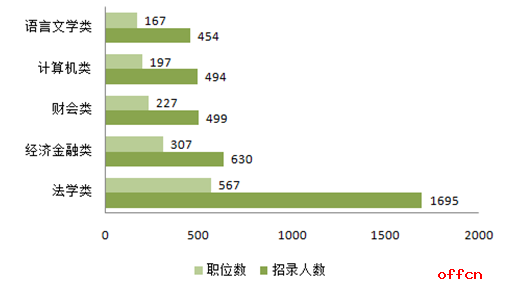 此外,還有433個職位不限制專業(yè),占總職位數(shù)的20.27%,所學專門比較冷門的考生可以考慮這些職位。