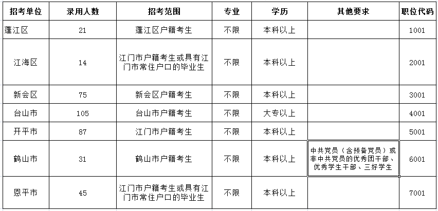 2011年廣東江門市村官考試職位表
