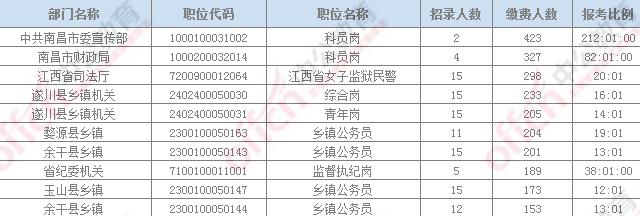 從今天的職位報名情況來看,報名人數(shù)最多的職位依然是“中共南昌市委宣傳部”,目前已經(jīng)繳費(fèi)423人,該職位計劃招考2人,報考比例212:1。該職位也是目前競爭最激烈的職位。