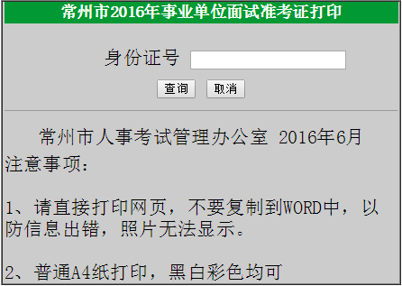 2016江蘇常州市事業(yè)單位面試準考證打印入口
